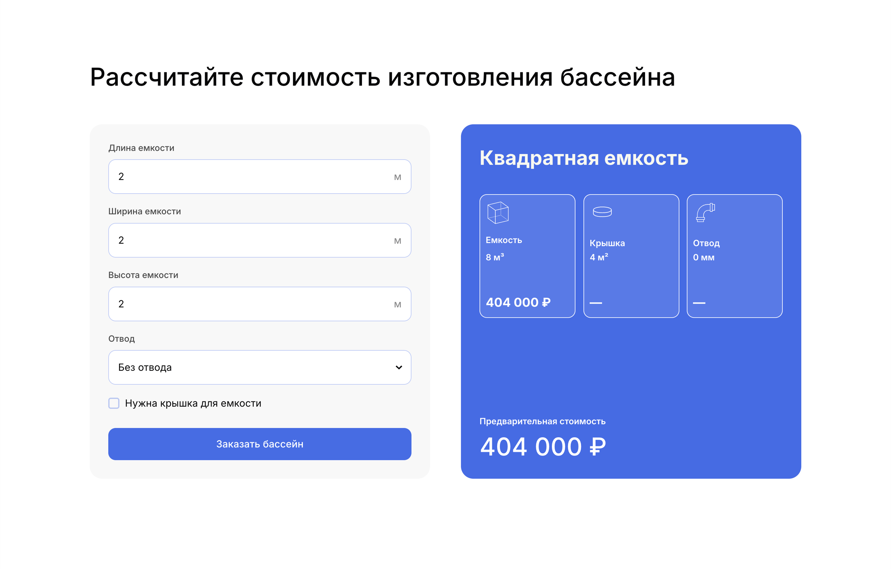 Калькулятор может рассчитывать стоимость, количество или другие значения при заполнении полей. Результат расчетов производится по указанной вами формуле и виден клиентам в режиме реального времени.